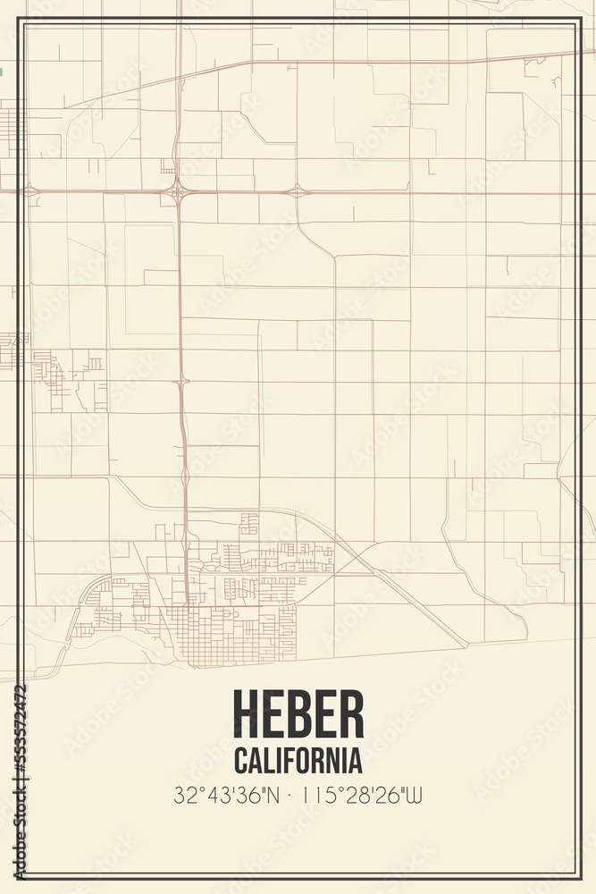 Retro US city map of Heber, California. Vintage street map. Stock